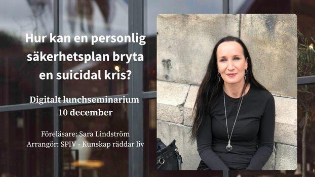 Föreläsare är Sara Lindström, Doktor med vet, postdoc, leg psykoterapeut och handledare i psykoterapi (KBT) samt samordnare strategisk suicidprevention, leg hälso- och sjukvårdskurator på Enheten för klinisk suicidforskning, Medicinska fakulteten FoUU- enheten Förvaltning Psykiatri, habilitering och hjälpmedel i Region Skåne.