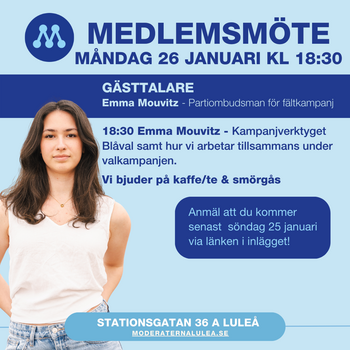 | Plats | Moderaternas Partilokal, G:a Kurirenhuset, Stationsgatan 36, Luleå |