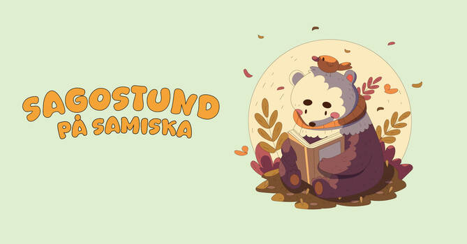Sagostund på samiska. Maria Labba läser högt på nordsamiska ur boken Lilli, Lavré och Saivofolket. Vi bjuder alla barn på kex och saft.